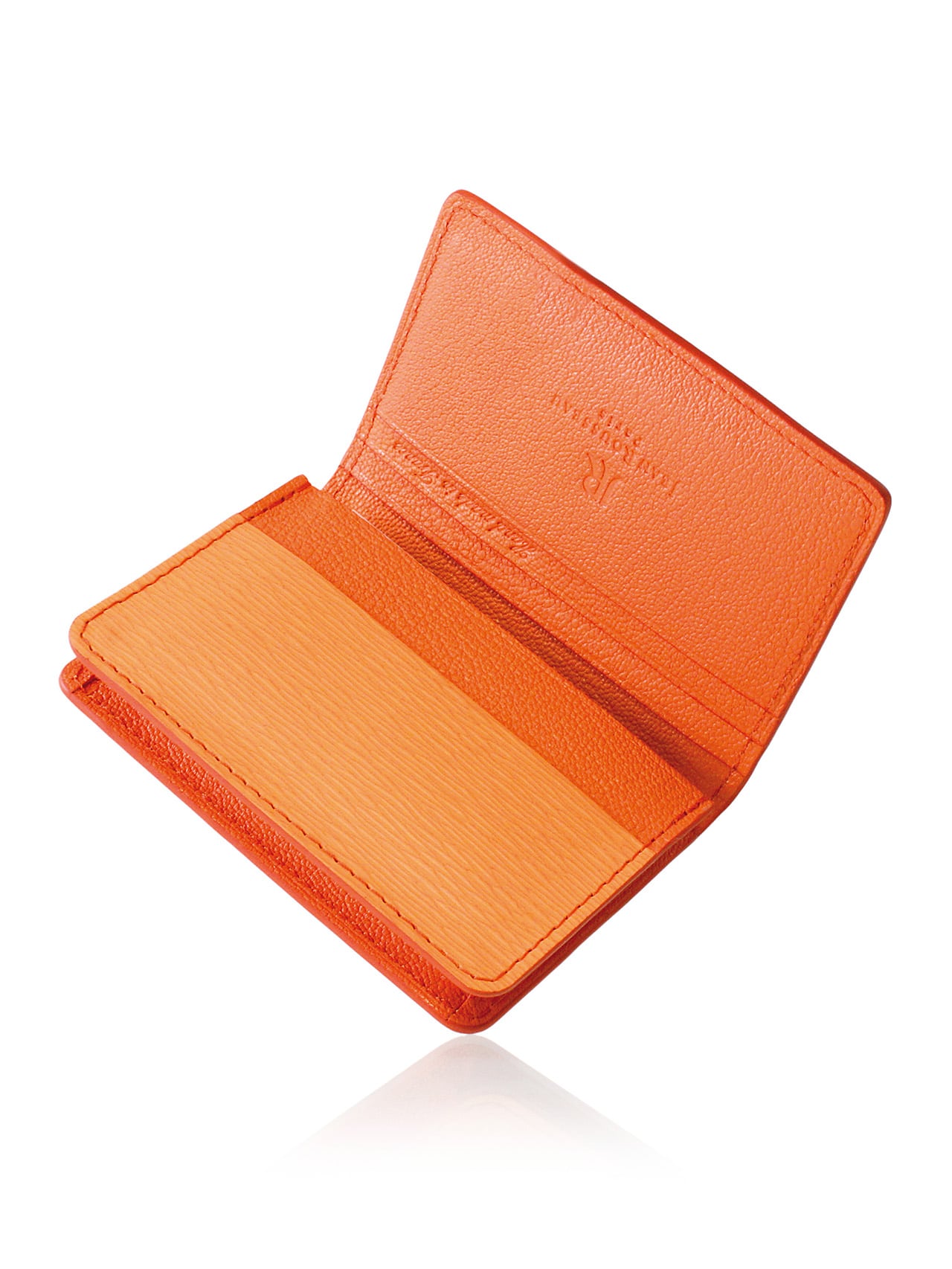 This business card holder can store business cards in a large storage space. In addition, ID cards and credit cards can also be inserted (with 3 card slots). This product is lined with goat leather and handcrafted by the artisans of the Manufacture Jean Rousseau.