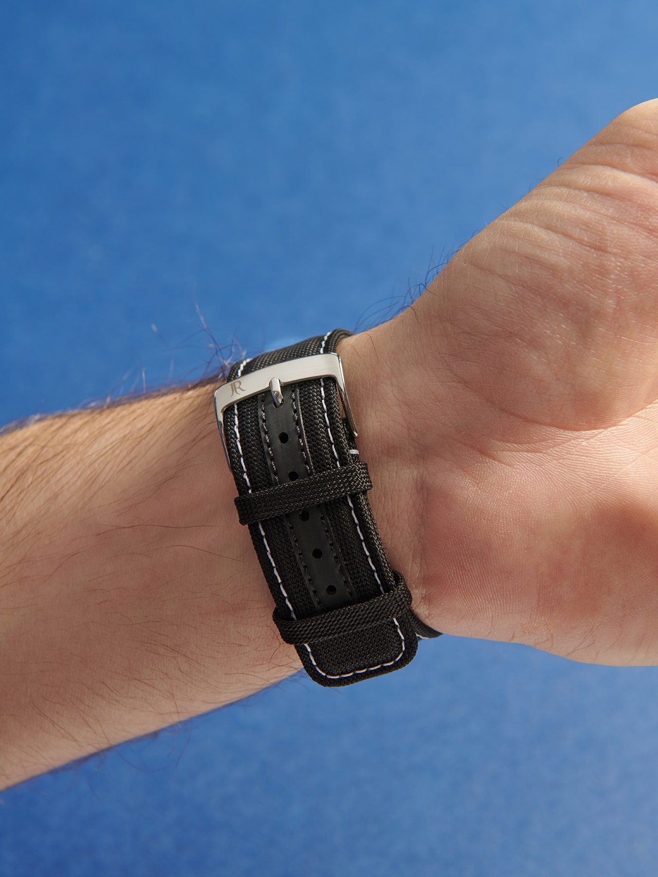 - Round padding, decreasing from 5mm at the watch case and tapering at 2.5mm at the pinholes