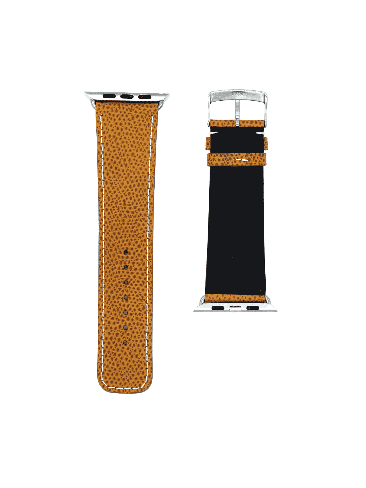 Calfskin is available embossed with different grain patterns such as “Soja” or “Dolphin.” These different textures add interest and an appealing, understated look to the surface of these calfskin straps and leather goods.