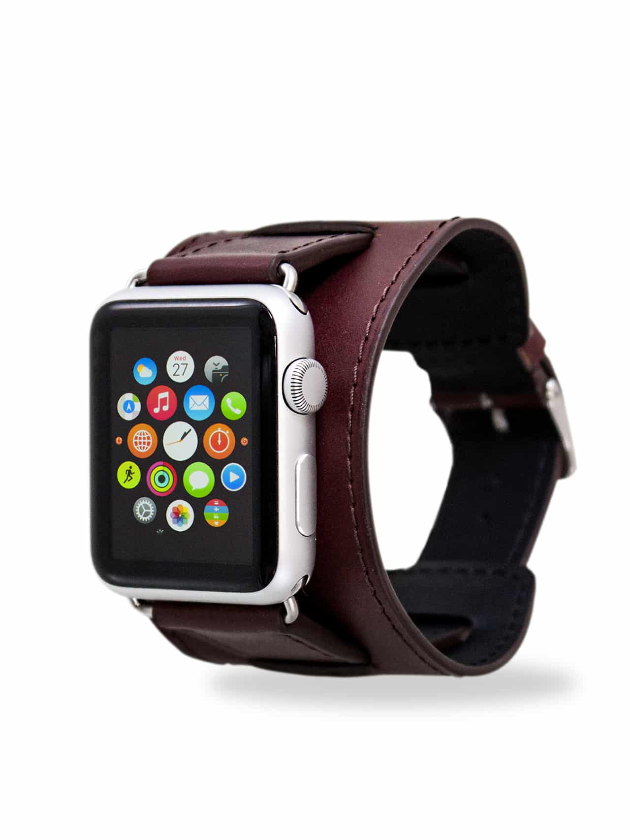 This sports model is made of a bracelet and its American plate, it is cut frank and sewn. With a cut designed to let the skin touch the sensors on the back of the watch, this sport style will perfectly complement your Apple Watch. It is currently available in two sizes, 38 and 42mm, and come with the buckle and the barrettes in silver or golden colors of your choice