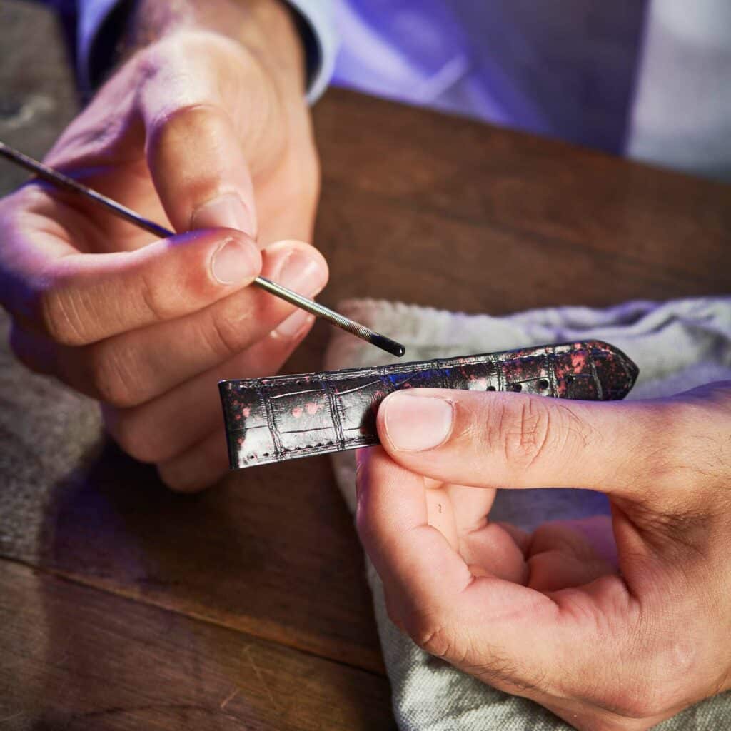 They are ready to hand-craft your watch strap and to take your order for bespoke leather goods. They will be glad to advise you on the different shapes and styles of watch straps to enhance your favorite time pieces. They will take measurements with you, note all the details and guide you through every choice in the composition of your bespoke order.